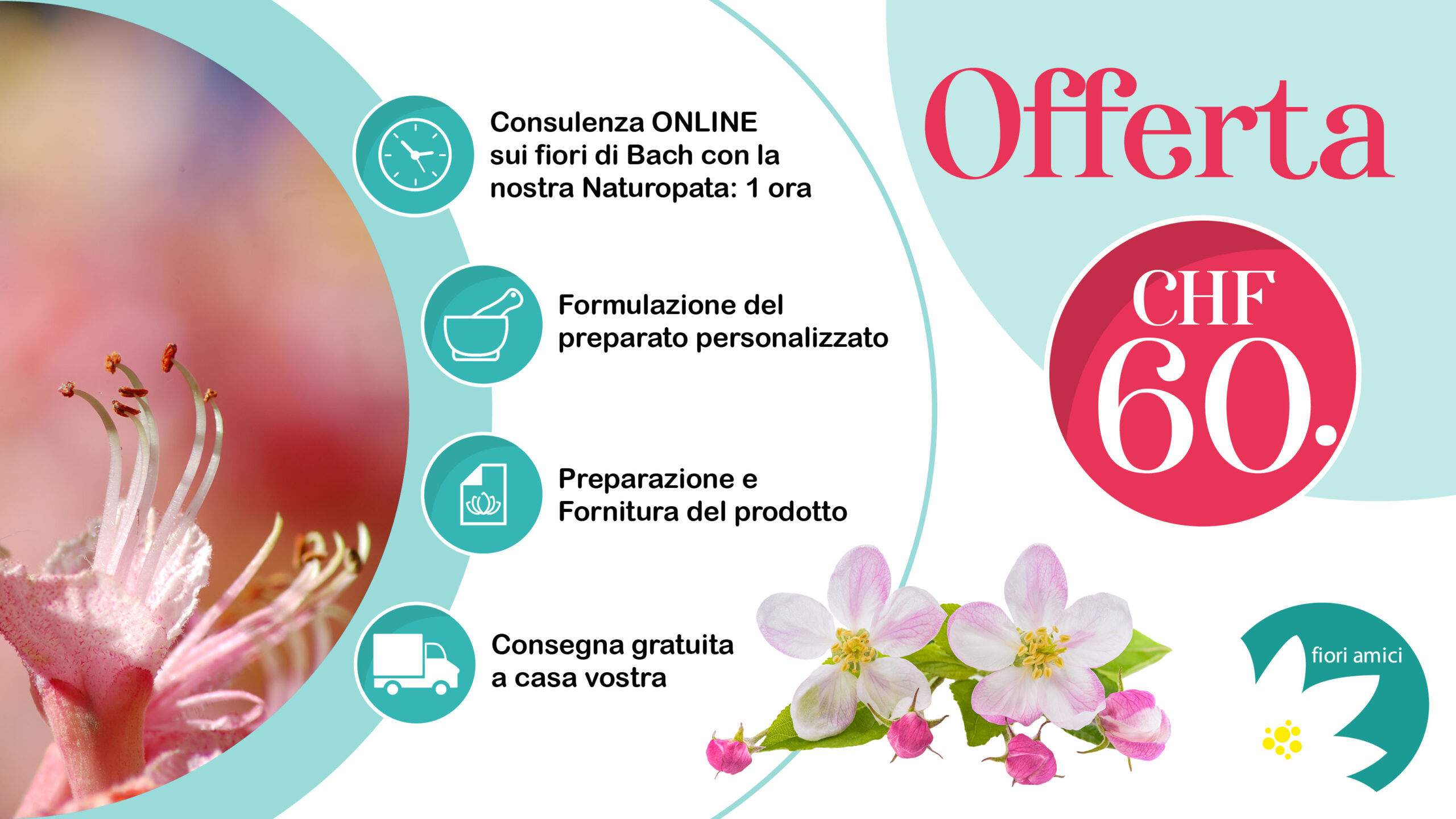 Acquista l’offerta, dopo il pagamento potrai contattare direttamente la nostra naturopata scrivendo una mail a naturopata@fioriamiciticino.ch per organizzare la tua consulenza.