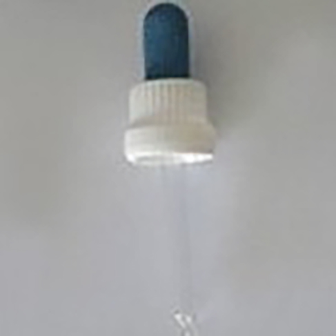 Pipetta contagocce di vetro, con chiusura di sicurezza, compatibile con boccettino di vetro scuro di pari volume.